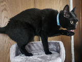 黒猫金目の女の子、青の首輪を付
